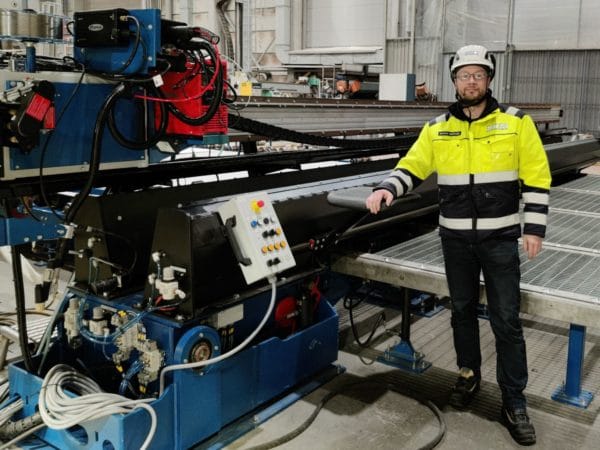 Uusi hitsausasema on kuusi metriä pitkä, ja se on räätälöity yrityksen muuhun tuotantolinjaan sopivaksi. Laitteen avulla päästään hitsaamaan entistä suurempia ainevahvuuksia.